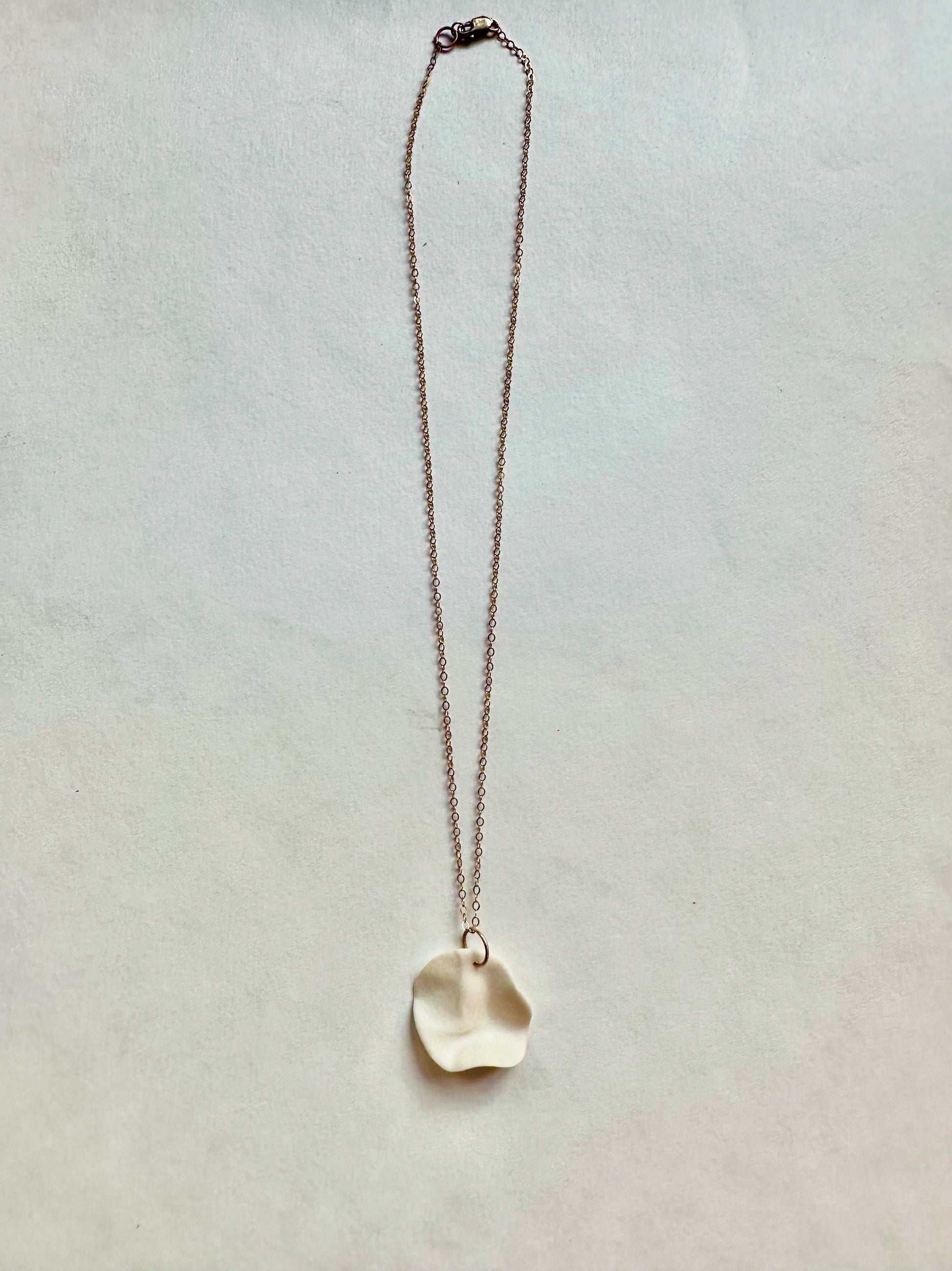 Crafted from porcelain, this delicate petal is meticulously finger-pinched into a modern, organic piece, perfect for everyday wear or dressing up.