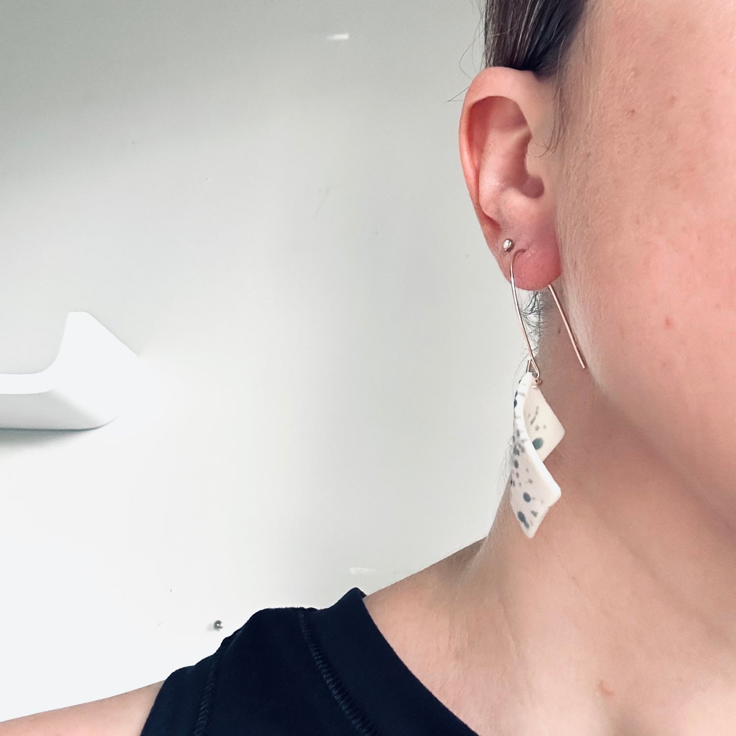 Each piece of Grounded Ceramics jewelry is handcrafted from porcelain and 14K gold-filled or sterling silver components. With proper care, your jewelry will stay beautiful for years to come.